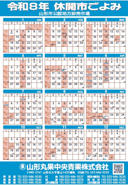 山形丸果中央青果株式会社の休開市ごよみが完成致しました。