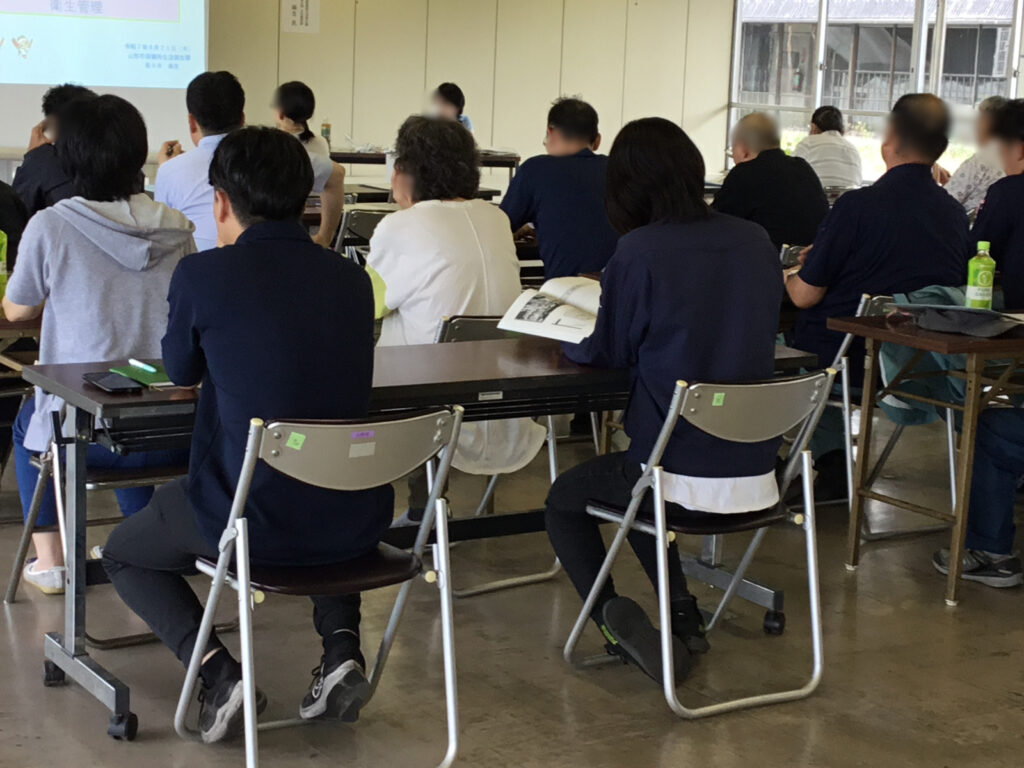 お知らせ 2025年8月21日 令和7年度「衛生管理講習会」 2025年8月22日 8月21日(木) 当社の若手社員2名が、山形市健康医療部 生活衛生課の食品衛生係の主任薬剤師の方を講師に迎えた衛生管理講習会に参加しました。 この講習会は、HACCP(ハサップ)制度化に伴う衛生管理の基本や、危害要因の考え方、届出制度について学ぶ貴重な機会です。 今後も、お客様に安全・安心な青果物をお届けできるよう、学んだ知識を日々の業務に活かしてまいります。 Twitter
